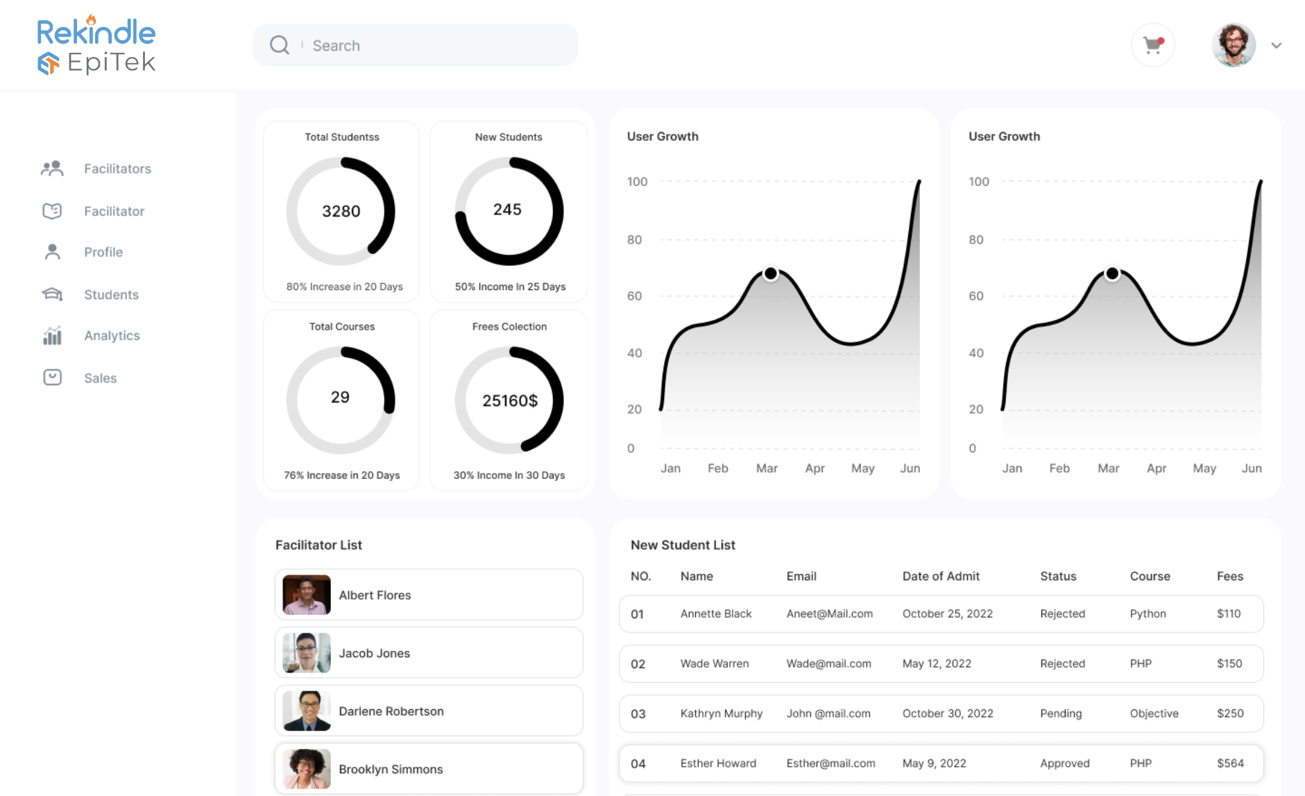 Full marketplace functionality with built in sorting, filtering and course breakdowns.